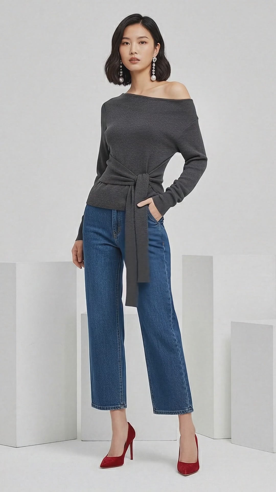 Elevate your everyday style with our Off-Shoulder Tie-Waist Knit Sweater , the perfect blend of cozy comfort and modern sophistication. Designed with a flattering asymmetric neckline, this chic sweater effortlessly highlights your shoulders while creating a sleek, feminine silhouette. The adjustable waist tie cinches your figure for a customizable fit that enhances your natural shape. Crafted from a soft, stretchy knit, it delivers all-day comfort without sacrificing style. Pair it with jeans, trousers, or a skirt for an elevated look that’s perfect for work, dinner, or weekend outings. A must-have trendy knit sweater for anyone looking to stay effortlessly stylish this season.