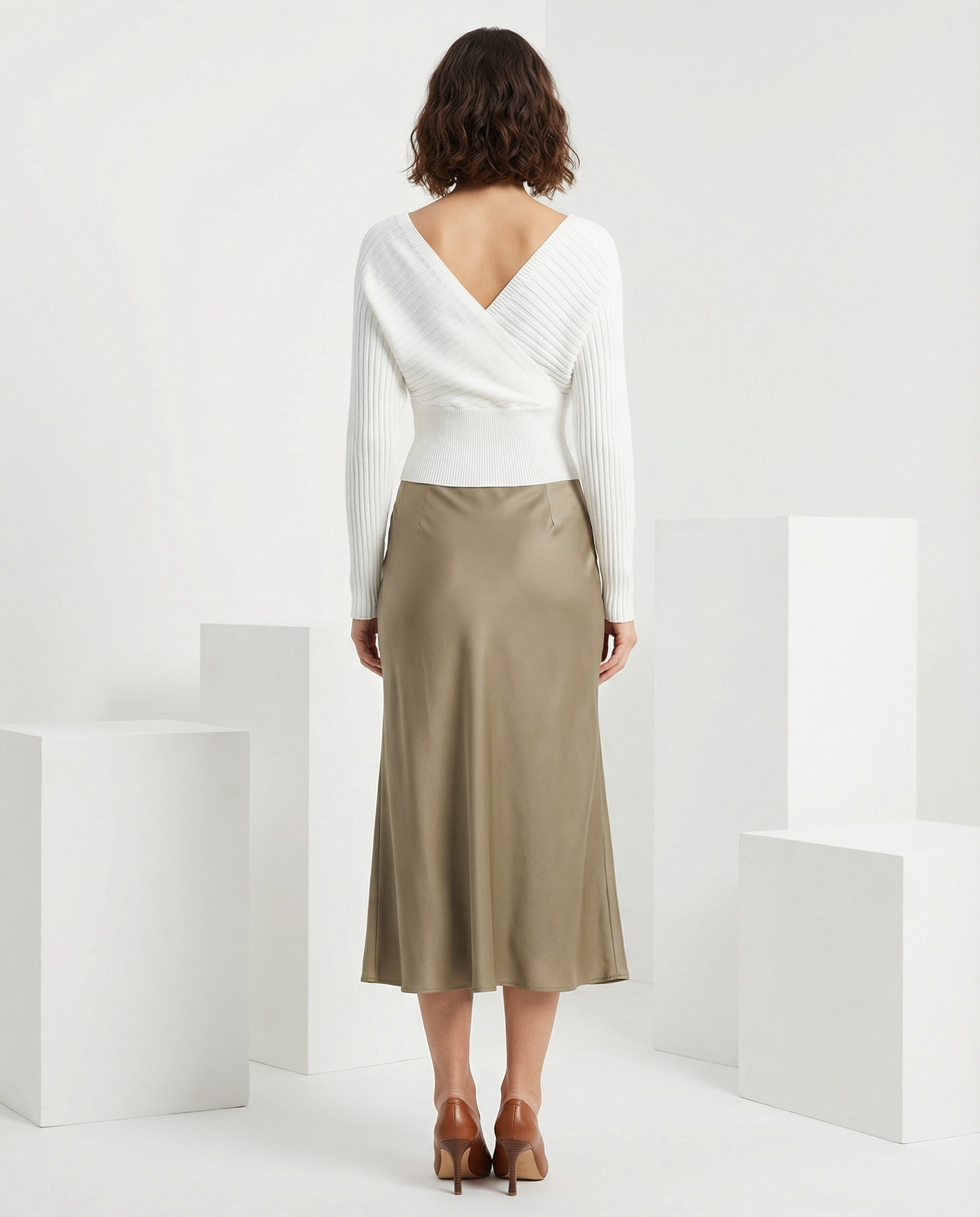 Turn heads effortlessly with this stunning off-shoulder wrap knit sweater, designed to accentuate your neckline and highlight your natural curves. Made with a soft, stretchy ribbed fabric, it features a flattering cross-front wrap design that creates a beautiful V-neck silhouette while offering a comfortable, body-hugging fit. The long sleeves balance the elegant neckline, and the fitted waist gives you that perfect hourglass shape without sacrificing comfort.