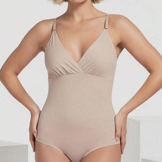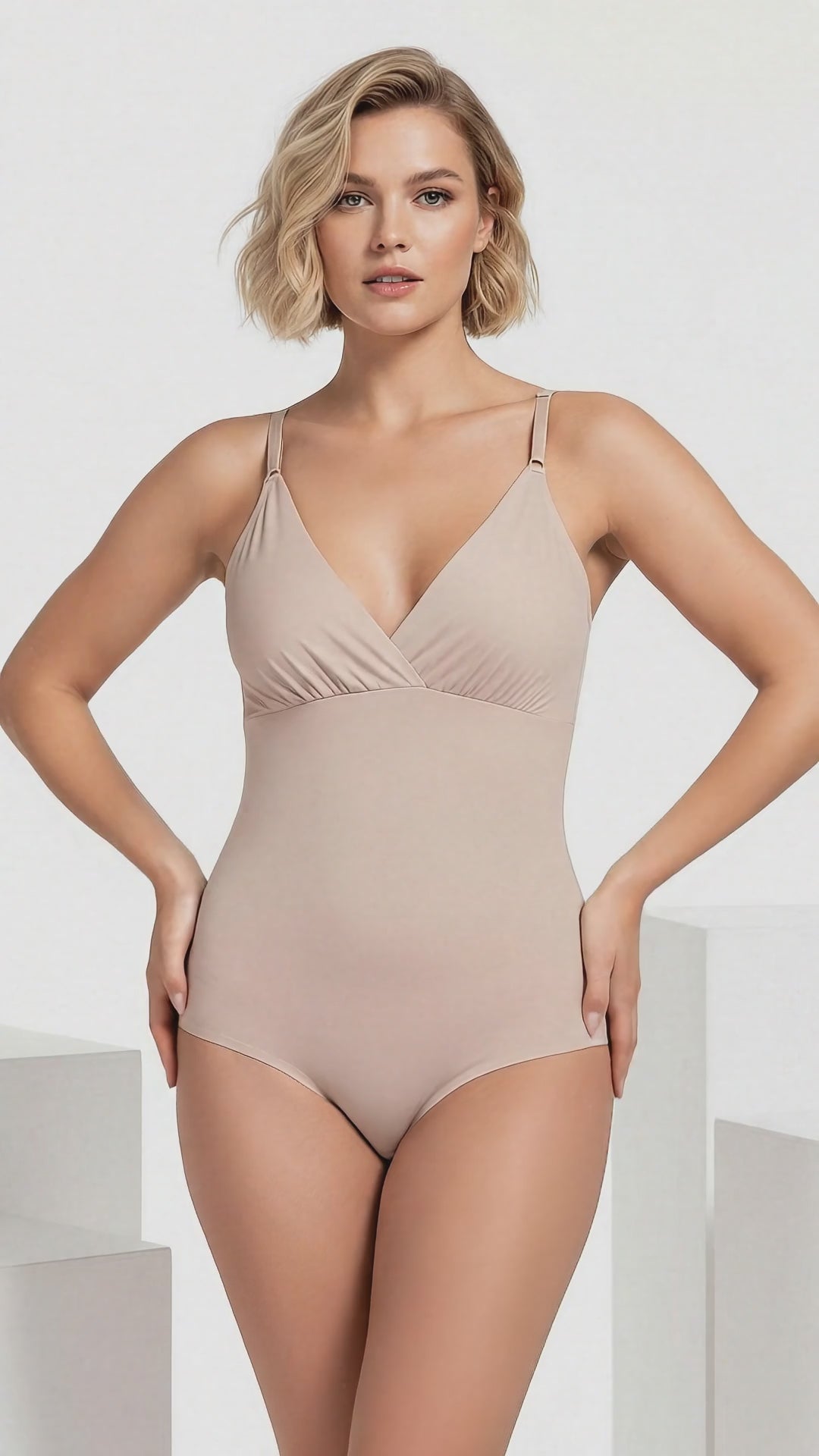 Seamless V-Neck Shapewear Bodysuit – Tummy Control Compression
