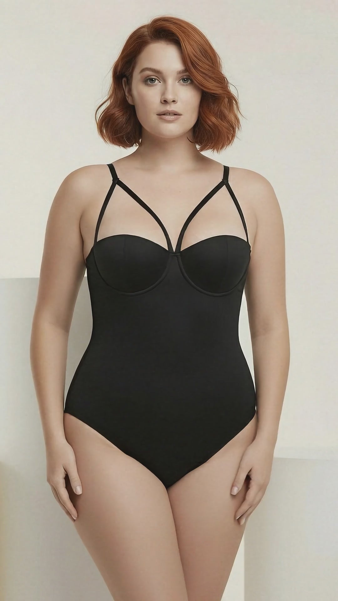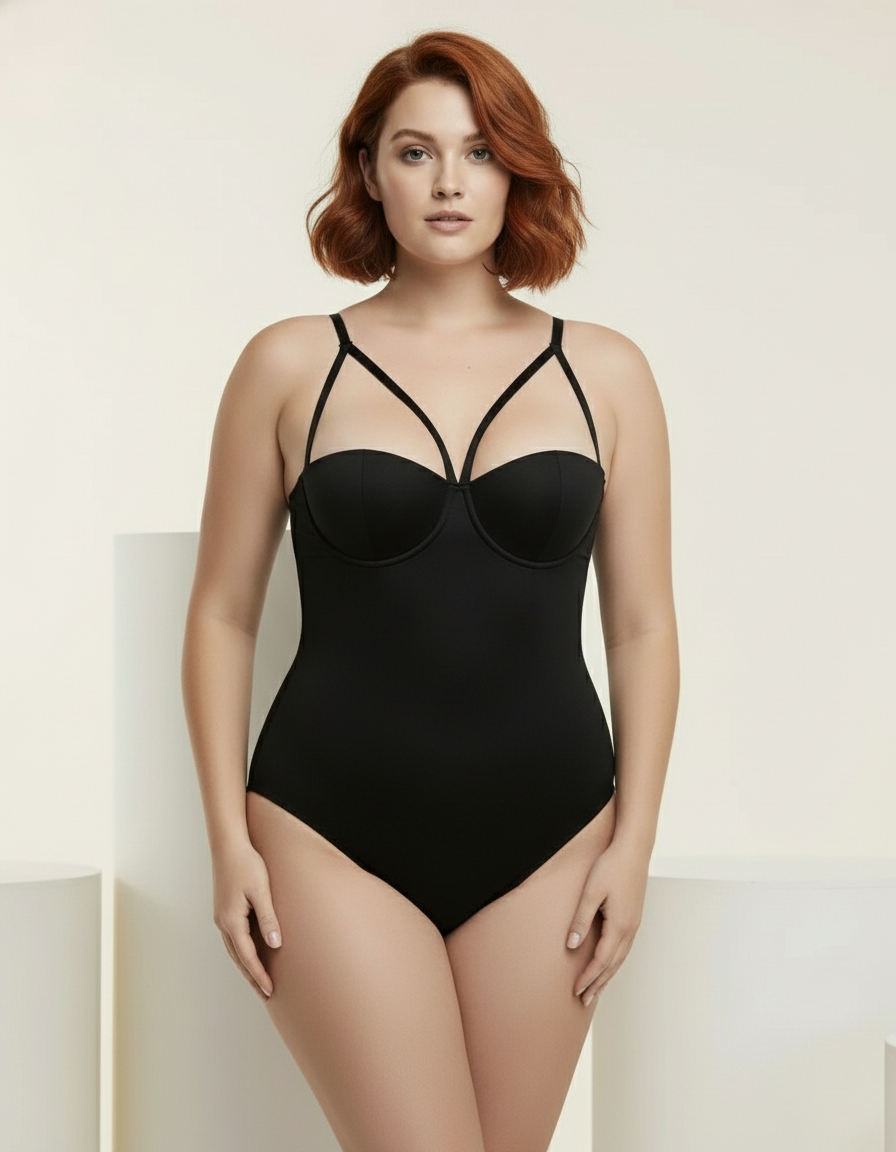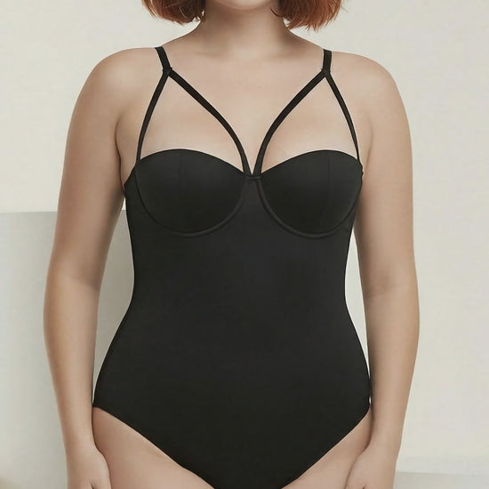 Sleek, sculpting, and effortlessly flattering — this strappy black bodysuit is designed to enhance your natural curves with the perfect balance of support and comfort. Featuring medium compression, it smooths and shapes your figure while allowing natural movement and all-day wear.
